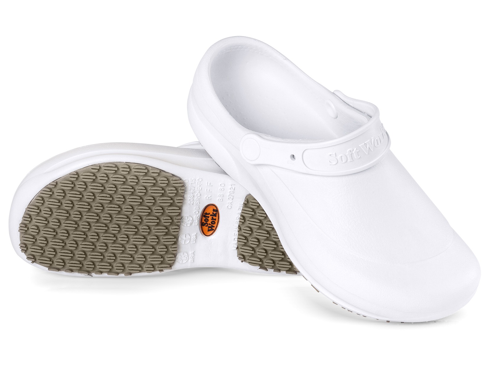 CALÇADO OCUPACIONAL DE USO PROFISSIONAL TIPO TAMANCO, CONFECCIONADO EM EVA, SOLETA DE BORRACHA ANTIDERRAPANTE, RESISTENTE AO ESCORREGAMENTO EM PISO CERÂMICO COM SOLUÇÃO DE DETERGENTE E PISO DE AÇO COM SOLUÇÃO DE GLICEROL, RESISTENTE À ABSORÇÃO DE ENERGIA NA REGIÃO DO SALTO E AO ÓLEO COMBUSTÍVEL.